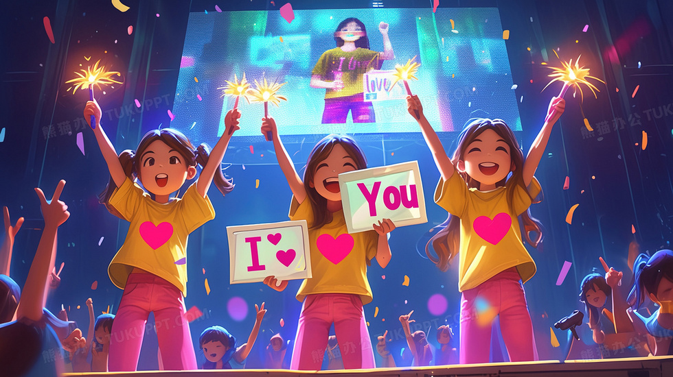 本作品内容为手挥荧光棒观看演唱会的女孩子们插画, 格式为 jpg, 大小3 MB, 图片尺寸为2912 x 1632, 源文件无水印, 欢迎使用熊猫办公。 如认为平台内容涉嫌侵权,可通过邮件:tousu@tukuppt.com提出书面通知,我们将及时处理。