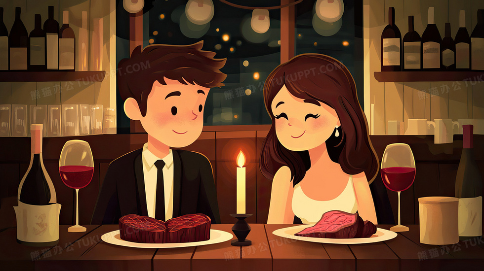 本作品内容为西餐厅情侣用餐插画, 格式为 jpg, 大小3 MB, 图片尺寸为2912 x 1632, 源文件无水印, 欢迎使用熊猫办公。 如认为平台内容涉嫌侵权,可通过邮件:tousu@tukuppt.com提出书面通知,我们将及时处理。