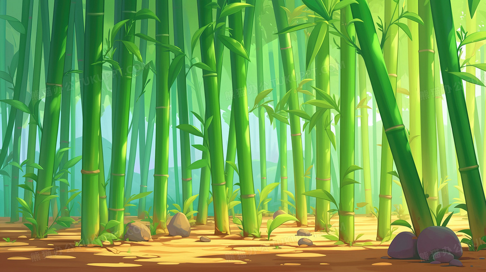 本作品内容为唯美春天翠绿竹林风景插画, 格式为 jpg, 大小3 MB, 图片尺寸为2912 x 1632, 源文件无水印, 欢迎使用熊猫办公。 如认为平台内容涉嫌侵权,可通过邮件:tousu@tukuppt.com提出书面通知,我们将及时处理。