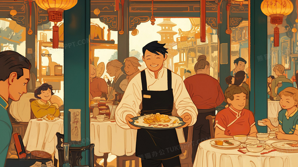 本作品内容为餐厅服务员上菜插画, 格式为 jpg, 大小3 MB, 图片尺寸为2912 x 1632, 源文件无水印, 欢迎使用熊猫办公。 如认为平台内容涉嫌侵权,可通过邮件:tousu@tukuppt.com提出书面通知,我们将及时处理。