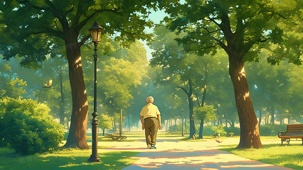 本作品内容为老年人清晨公园散步健康生活插画, 格式为 jpg, 大小3 MB, 图片尺寸为2912 x 1632, 源文件无水印, 欢迎使用熊猫办公。 如认为平台内容涉嫌侵权,可通过邮件:tousu@tukuppt.com提出书面通知,我们将及时处理。