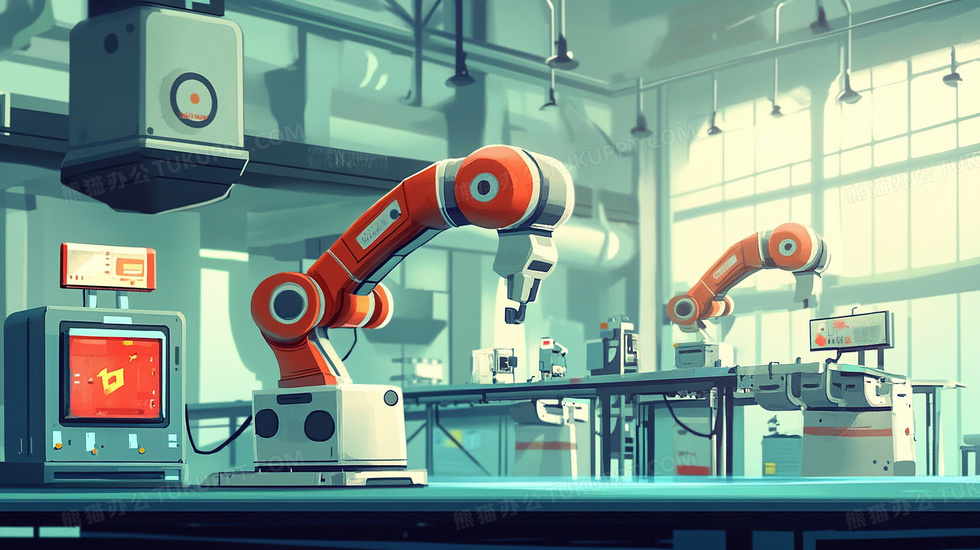 本作品内容为人工智能机械手臂流水线工厂插画, 格式为 jpg, 大小3 MB, 图片尺寸为2912 x 1632, 源文件无水印, 欢迎使用熊猫办公。 如认为平台内容涉嫌侵权,可通过邮件:tousu@tukuppt.com提出书面通知,我们将及时处理。