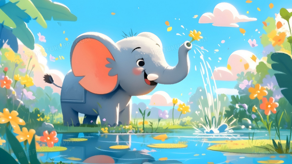 本作品内容为卡通动画大象在河边喝水玩耍插画, 格式为 jpg, 大小3 MB, 图片尺寸为2912 x 1632, 源文件无水印, 欢迎使用熊猫办公。 如认为平台内容涉嫌侵权,可通过邮件:tousu@tukuppt.com提出书面通知,我们将及时处理。