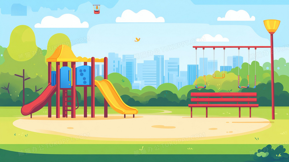 本作品内容为滑梯公园草地游乐场欢乐玩耍插画, 格式为 jpg, 大小2 MB, 图片尺寸为2912 x 1632, 源文件无水印, 欢迎使用熊猫办公。 如认为平台内容涉嫌侵权,可通过邮件:tousu@tukuppt.com提出书面通知,我们将及时处理。