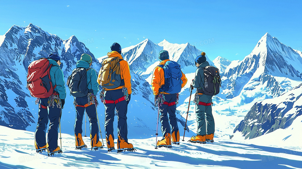 首页 > 插画 > 科技艺术 > 卡通漫画 > 雪山登山团队插画