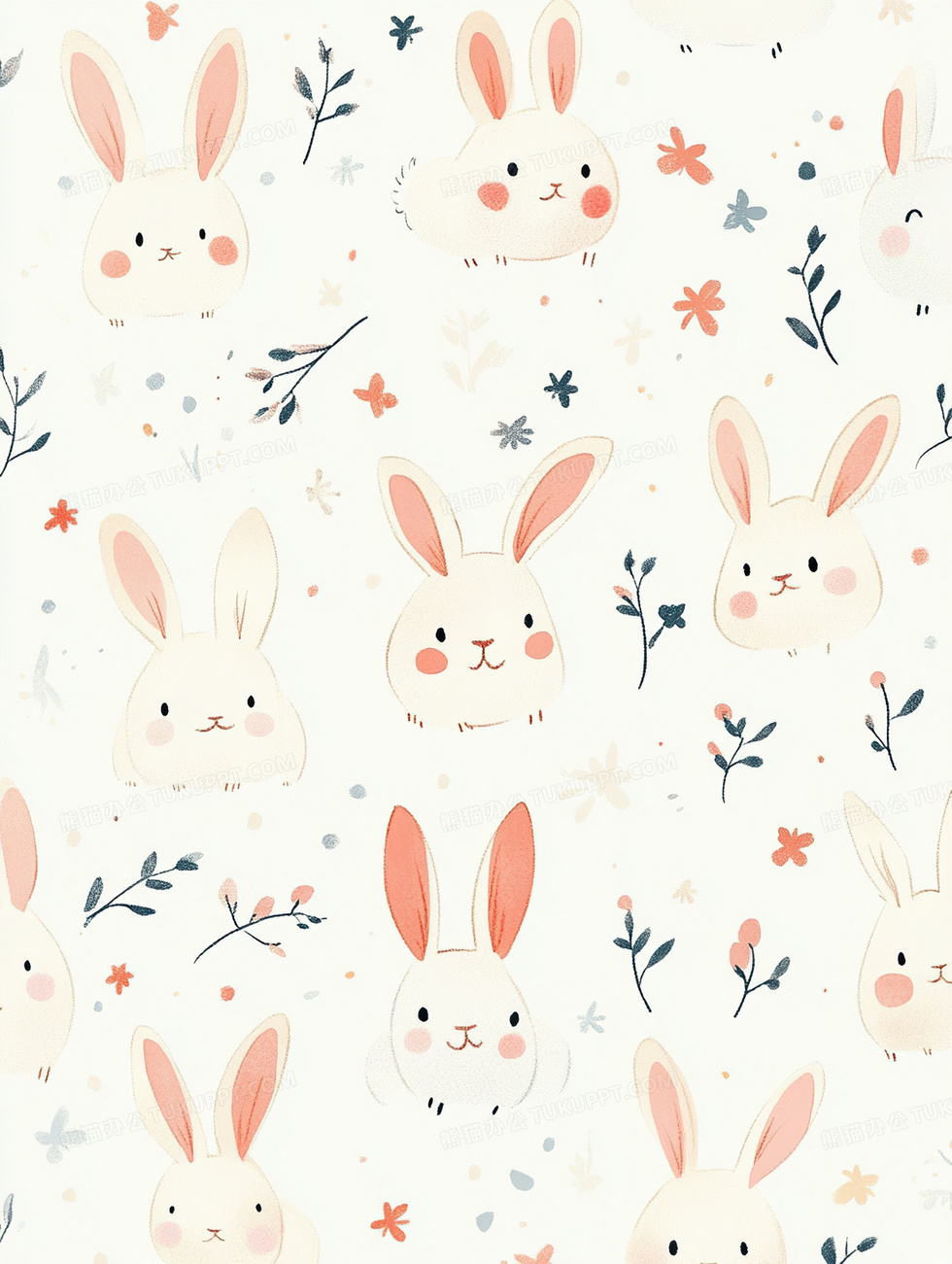本作品内容为小兔子平铺印花背景, 格式为 jpg, 大小2 MB, 图片尺寸为1856 x 2464, 作品中背景图片无需修改, 源文件无水印,可以直接使用, 欢迎使用熊猫办公。 如认为平台内容涉嫌侵权,可通过邮件:tousu@tukuppt.com提出书面通知,我们将及时处理。