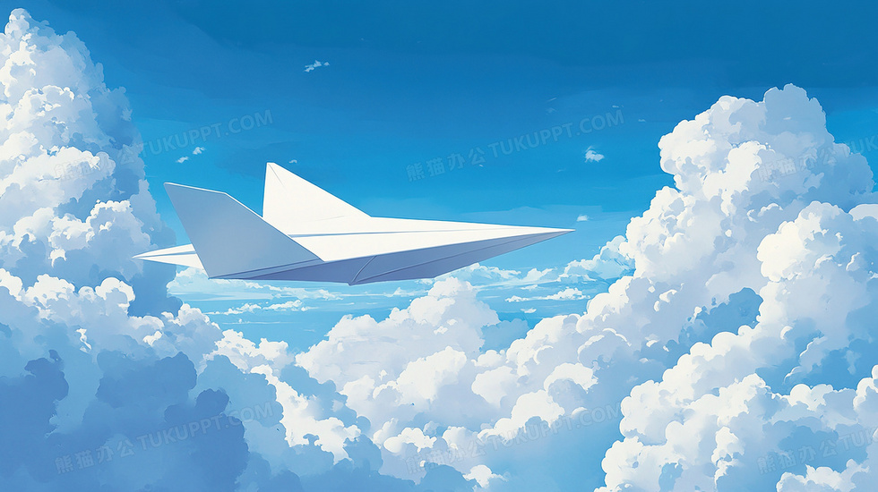 本作品内容为蓝天白云中一搜纸飞机插画, 格式为 jpg, 大小3 MB, 图片尺寸为2912 x 1632, 源文件无水印, 欢迎使用熊猫办公。 如认为平台内容涉嫌侵权,可通过邮件:tousu@tukuppt.com提出书面通知,我们将及时处理。