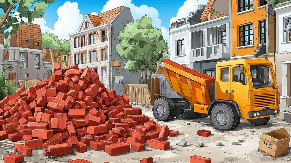 本作品内容为建筑工地运输车运输红砖插画, 格式为 jpg, 大小5 MB, 图片尺寸为2912 x 1632, 源文件无水印, 欢迎使用熊猫办公。 如认为平台内容涉嫌侵权,可通过邮件:tousu@tukuppt.com提出书面通知,我们将及时处理。