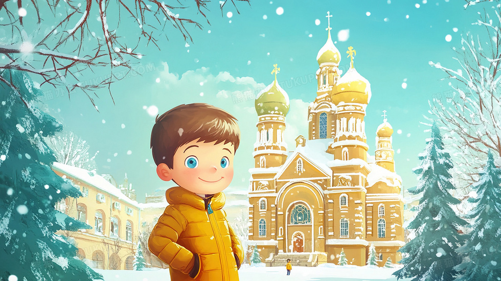 本作品内容为男孩打卡东北热门旅游景点索菲亚教堂插画, 格式为 jpg, 大小3 MB, 图片尺寸为2912 x 1632, 源文件无水印, 欢迎使用熊猫办公。 如认为平台内容涉嫌侵权,可通过邮件:tousu@tukuppt.com提出书面通知,我们将及时处理。
