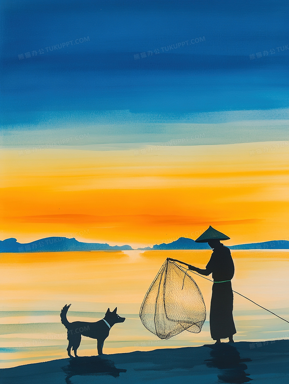 本作品内容为渔民与狗卡通背景, 格式为 jpg, 大小3 MB, 图片尺寸为1856 x 2464, 作品中背景图片无需修改, 源文件无水印,可以直接使用, 欢迎使用熊猫办公。 如认为平台内容涉嫌侵权,可通过邮件:tousu@tukuppt.com提出书面通知,我们将及时处理。