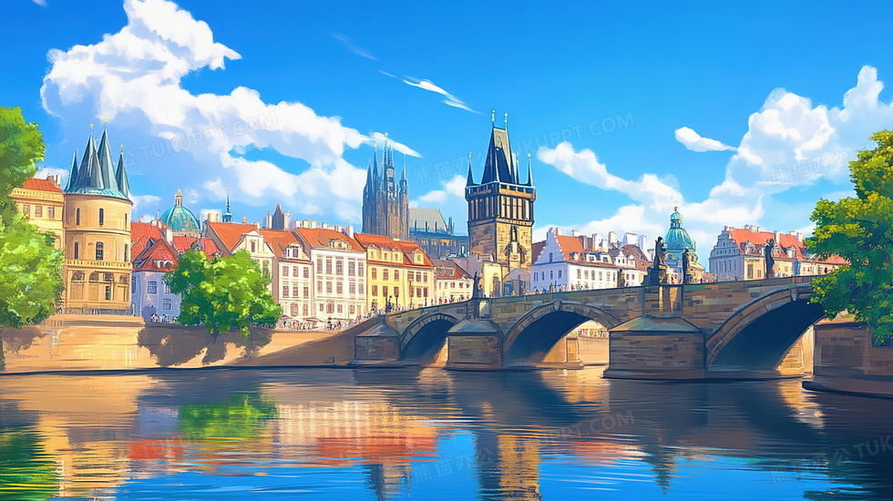 本作品内容为欧式建筑物城市里的石桥插画, 格式为 jpg, 大小4 MB, 图片尺寸为2912 x 1632, 源文件无水印, 欢迎使用熊猫办公。 如认为平台内容涉嫌侵权,可通过邮件:tousu@tukuppt.com提出书面通知,我们将及时处理。
