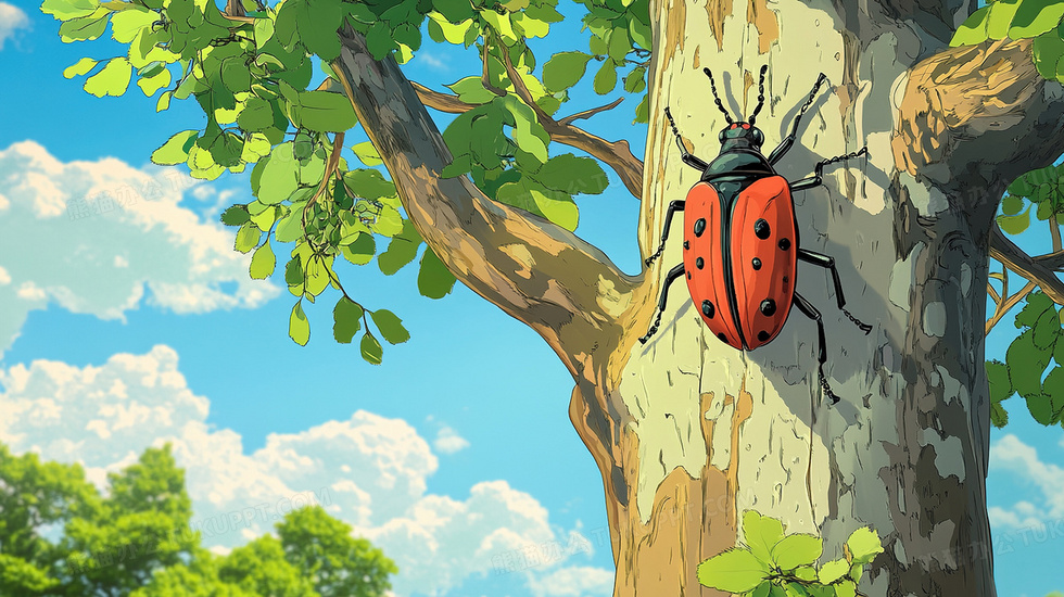本作品内容为户外自然界树上的甲虫插画, 格式为 jpg, 大小4 MB, 图片尺寸为2912 x 1632, 源文件无水印, 欢迎使用熊猫办公。 如认为平台内容涉嫌侵权,可通过邮件:tousu@tukuppt.com提出书面通知,我们将及时处理。