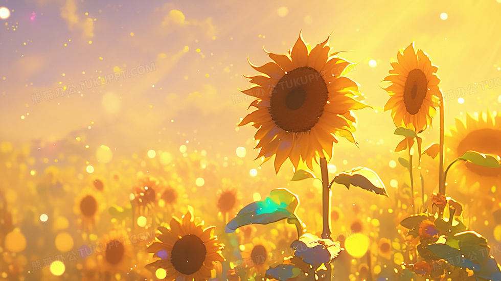 本作品内容为黄色阳光向日葵花海唯美插画, 格式为 jpg, 大小3 MB, 图片尺寸为2912 x 1632, 源文件无水印, 欢迎使用熊猫办公。 如认为平台内容涉嫌侵权,可通过邮件:tousu@tukuppt.com提出书面通知,我们将及时处理。