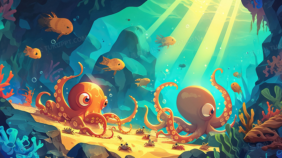 本作品内容为章鱼海洋生物插画, 格式为 jpg, 大小3 MB, 图片尺寸为2912 x 1632, 源文件无水印, 欢迎使用熊猫办公。 如认为平台内容涉嫌侵权,可通过邮件:tousu@tukuppt.com提出书面通知,我们将及时处理。