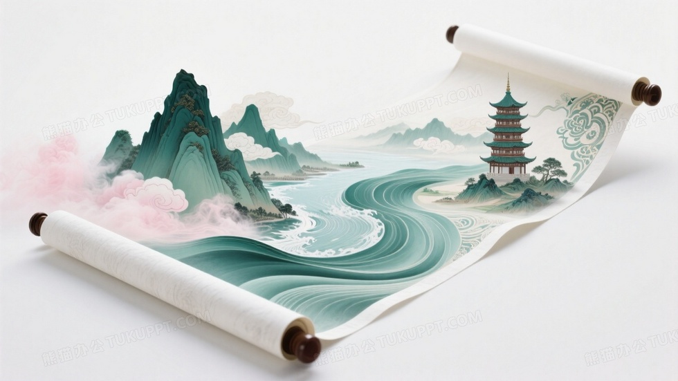 本作品内容为新中式绘画主色调青绿色由深到浅, 格式为 jpg, 大小1 MB, 图片尺寸为1664 x 936, 作品中背景图片无需修改, 源文件无水印,可以直接使用, 欢迎使用熊猫办公。 如认为平台内容涉嫌侵权,可通过邮件:tousu@tukuppt.com提出书面通知,我们将及时处理。