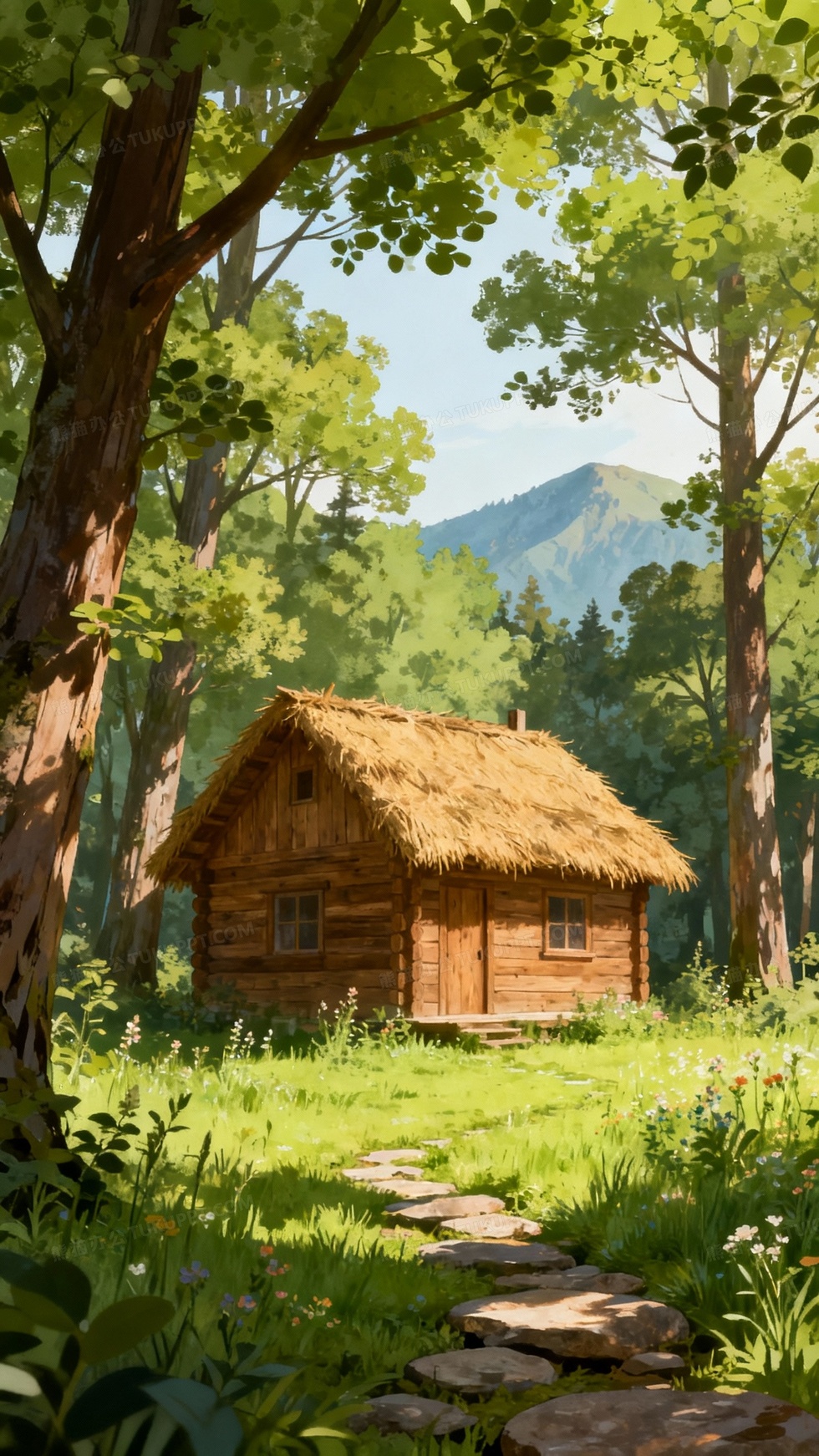 本作品内容为森林中有房子插画, 格式为 jpg, 大小2 MB, 图片尺寸为1440 x 2560, 源文件无水印, 欢迎使用熊猫办公。 如认为平台内容涉嫌侵权,可通过邮件:tousu@tukuppt.com提出书面通知,我们将及时处理。