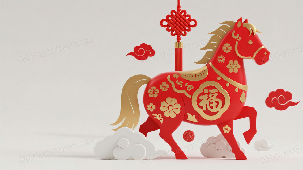 本作品内容为立体红金马形象马年创意背景图, 格式为 jpg, 大小3 MB, 图片尺寸为3328 x 1872, 作品中背景图片无需修改, 源文件无水印,可以直接使用, 欢迎使用熊猫办公。 如认为平台内容涉嫌侵权,可通过邮件:tousu@tukuppt.com提出书面通知,我们将及时处理。