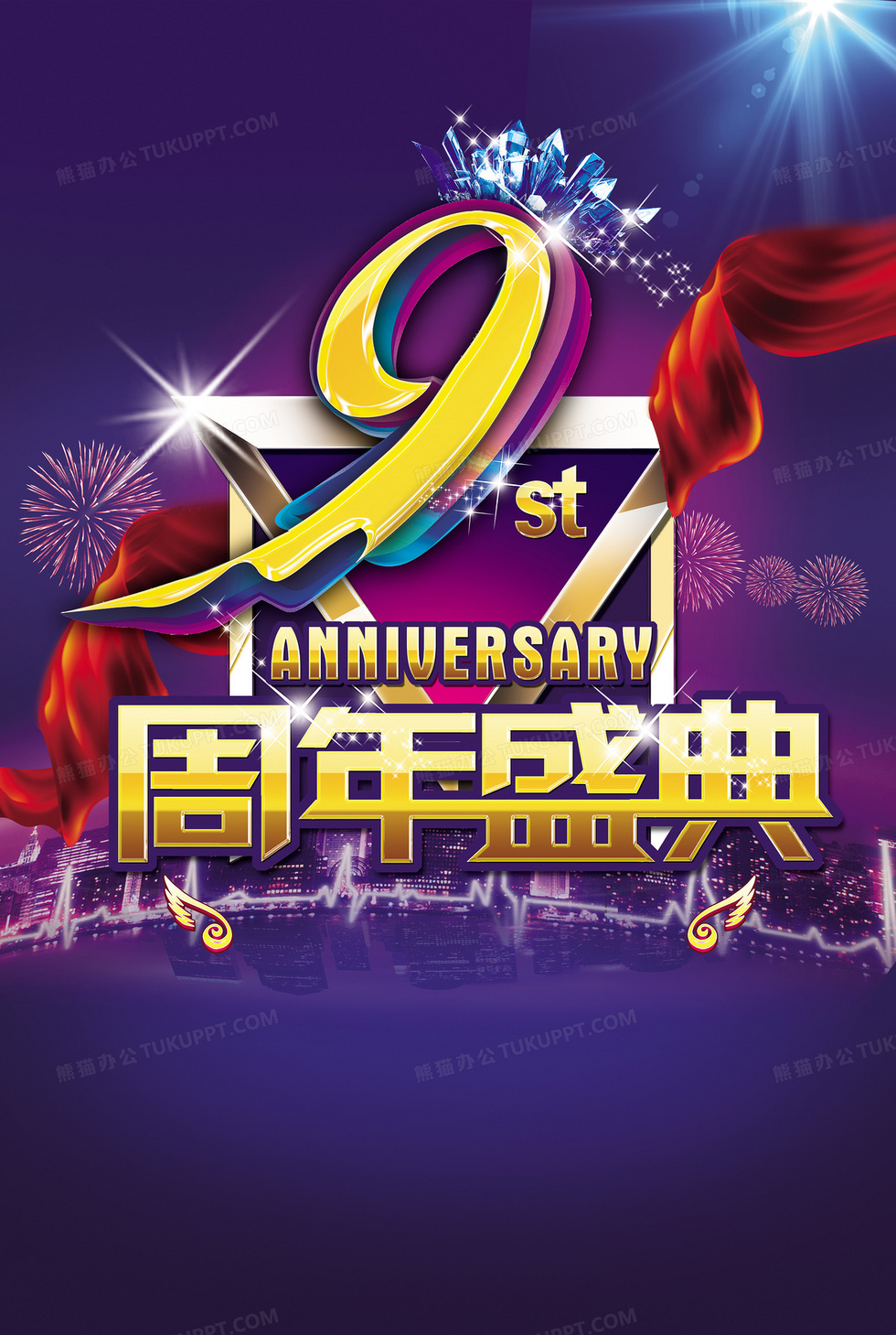 本作品内容为9周年盛典海报, 格式为 psd, 图片尺寸为2500 x 3720, 作品中背景图片无需修改, 源文件无水印,可以直接使用, 欢迎使用熊猫办公。 如认为平台内容涉嫌侵权,可通过邮件:tousu@tukuppt.com提出书面通知,我们将及时处理。