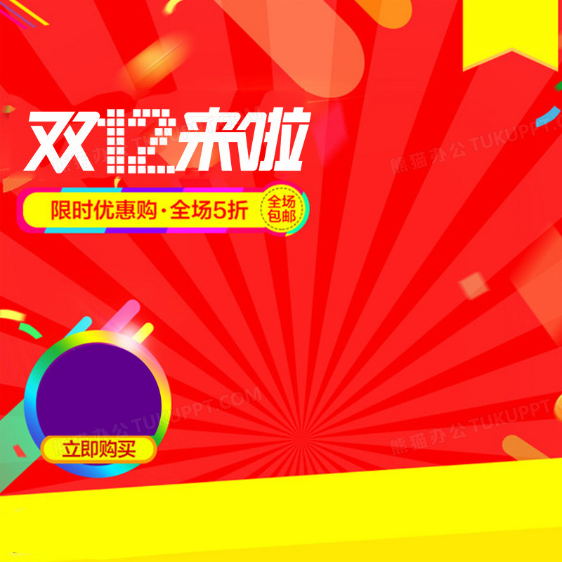本作品内容为淘宝双十二红色背景直通车主图, 格式为 jpg, 图片尺寸为800 x 800, 作品中背景图片无需修改, 源文件无水印,可以直接使用, 欢迎使用熊猫办公。 如认为平台内容涉嫌侵权,可通过邮件:tousu@tukuppt.com提出书面通知,我们将及时处理。