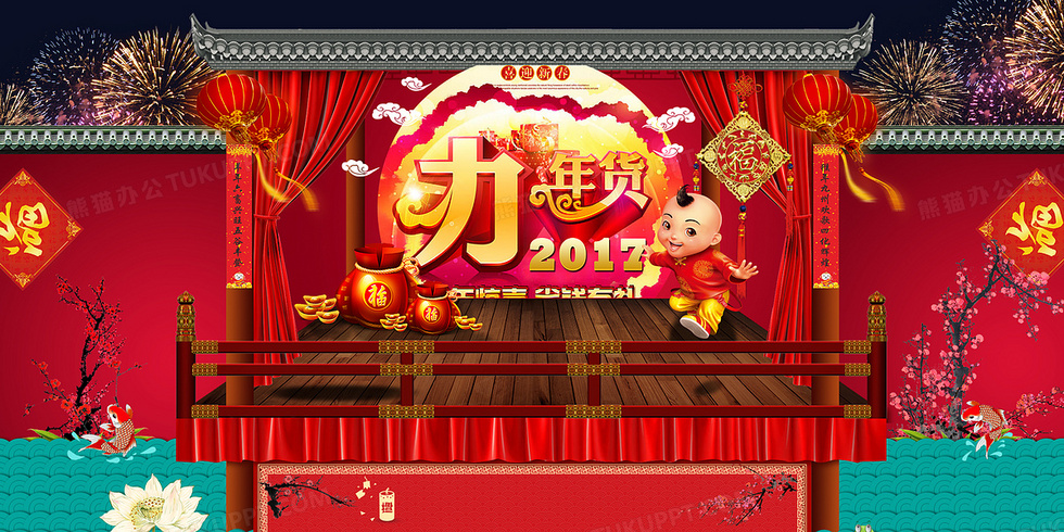 本作品内容为中国风办年货红底海报背景模板, 格式为 psd, 图片尺寸为7087 x 3543, 作品中背景图片无需修改, 源文件无水印,可以直接使用, 欢迎使用熊猫办公。 如认为平台内容涉嫌侵权,可通过邮件:tousu@tukuppt.com提出书面通知,我们将及时处理。