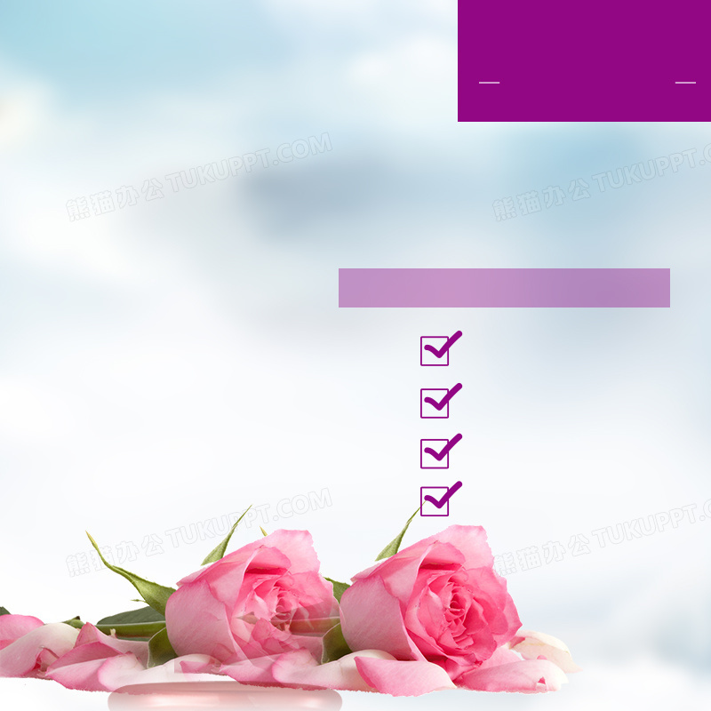 本作品内容为玫瑰花小清新简约背景图, 格式为 psd, 图片尺寸为800 x 800, 作品中背景图片无需修改, 源文件无水印,可以直接使用, 欢迎使用熊猫办公。 如认为平台内容涉嫌侵权,可通过邮件:tousu@tukuppt.com提出书面通知,我们将及时处理。