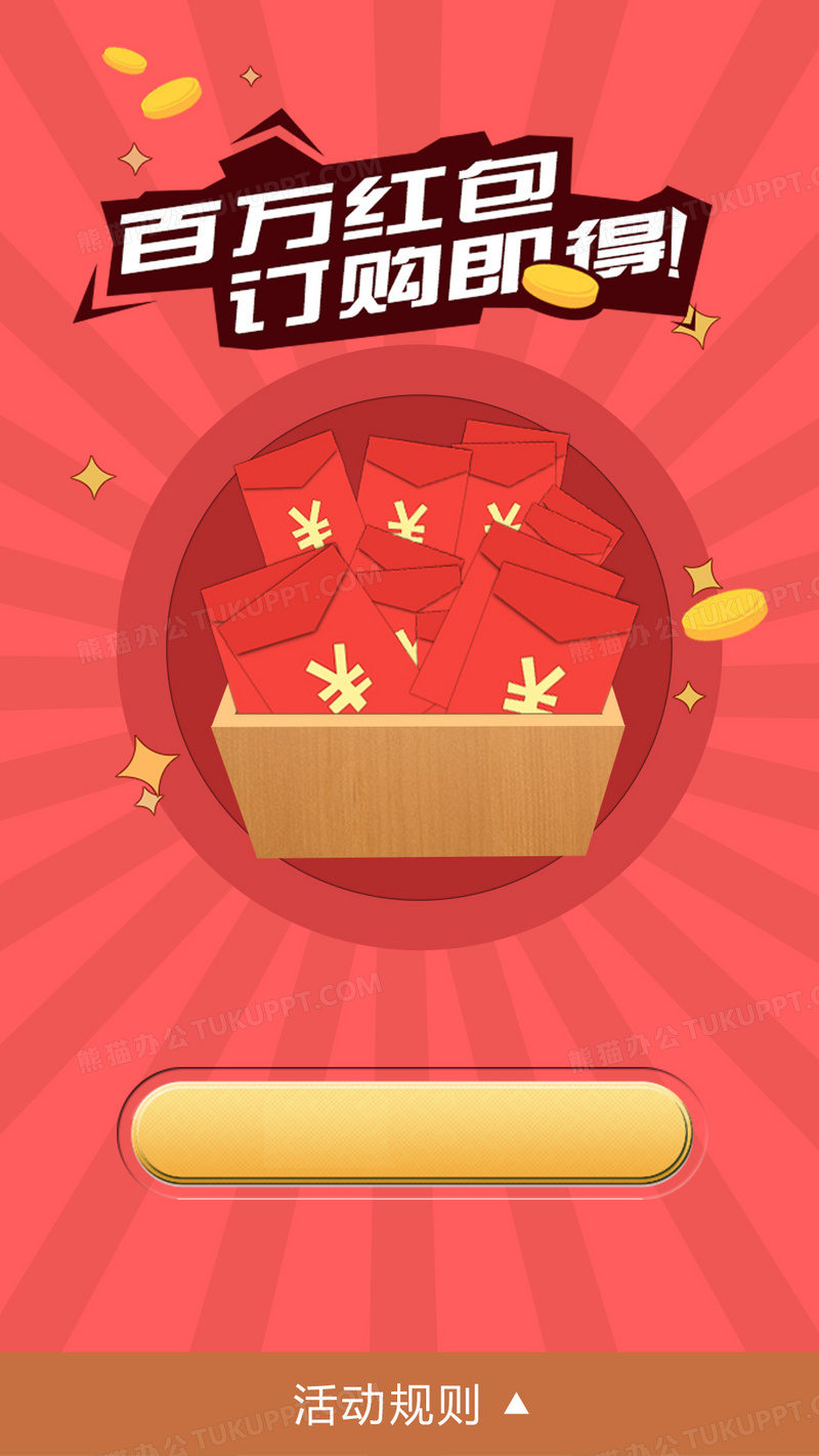 本作品内容为红包抽奖活动, 格式为 psd, 图片尺寸为1080 x 1920, 作品中背景图片无需修改, 源文件无水印,可以直接使用, 欢迎使用熊猫办公。 如认为平台内容涉嫌侵权,可通过邮件:tousu@tukuppt.com提出书面通知,我们将及时处理。