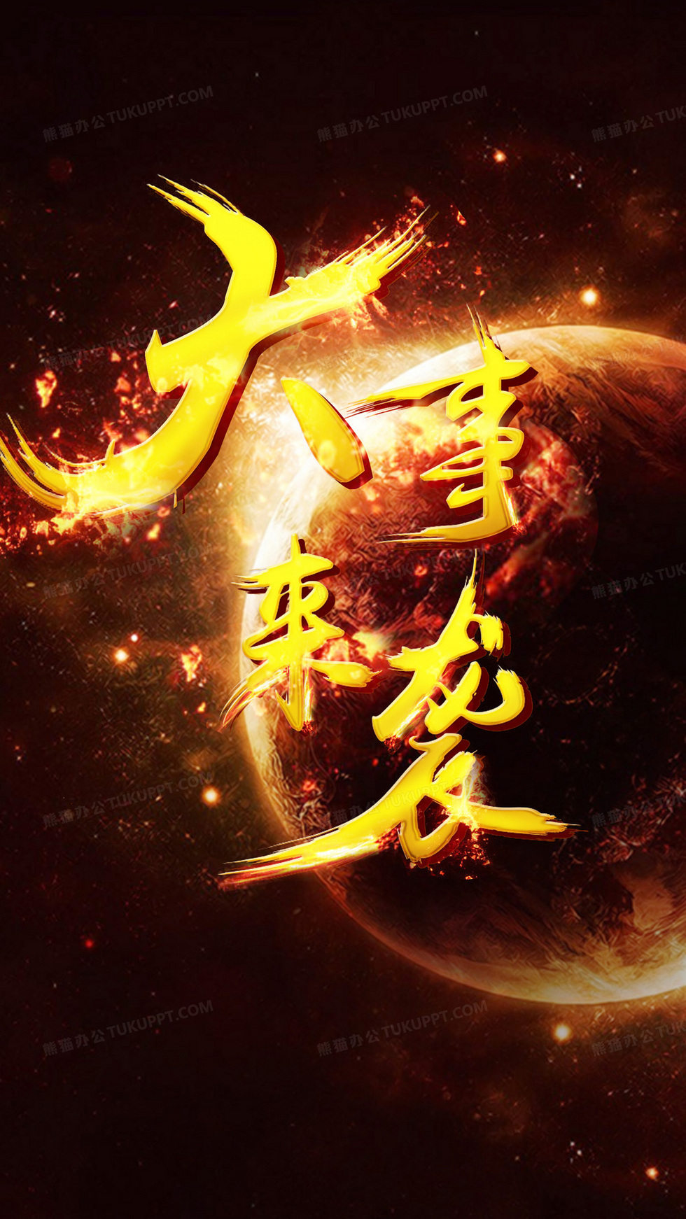 本作品内容为大事来袭震撼背景, 格式为 jpg, 图片尺寸为1242 x 2208, 作品中背景图片无需修改, 源文件无水印,可以直接使用, 欢迎使用熊猫办公。 如认为平台内容涉嫌侵权,可通过邮件:tousu@tukuppt.com提出书面通知,我们将及时处理。