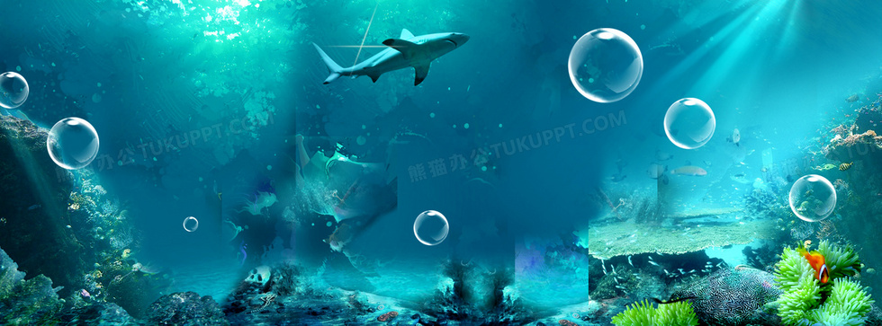 本作品内容为唯美海底背景, 格式为 psd, 图片尺寸为1920 x 710, 作品中背景图片无需修改, 源文件无水印,可以直接使用, 欢迎使用熊猫办公。 如认为平台内容涉嫌侵权,可通过邮件:tousu@tukuppt.com提出书面通知,我们将及时处理。