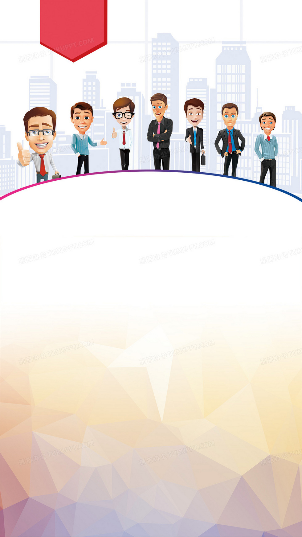 本作品内容为晶格几何扁平商务人士公司招聘H5背景素材, 格式为 psd, 图片尺寸为1242 x 2208, 作品中背景图片无需修改, 源文件无水印,可以直接使用, 欢迎使用熊猫办公。 如认为平台内容涉嫌侵权,可通过邮件:tousu@tukuppt.com提出书面通知,我们将及时处理。
