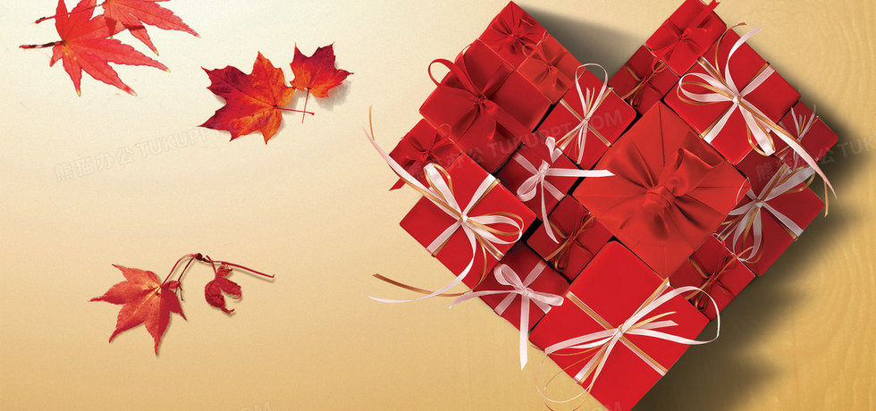 本作品内容为枫叶和爱心礼盒背景, 格式为 psd, 图片尺寸为1920 x 900, 作品中背景图片无需修改, 源文件无水印,可以直接使用, 欢迎使用熊猫办公。 如认为平台内容涉嫌侵权,可通过邮件:tousu@tukuppt.com提出书面通知,我们将及时处理。