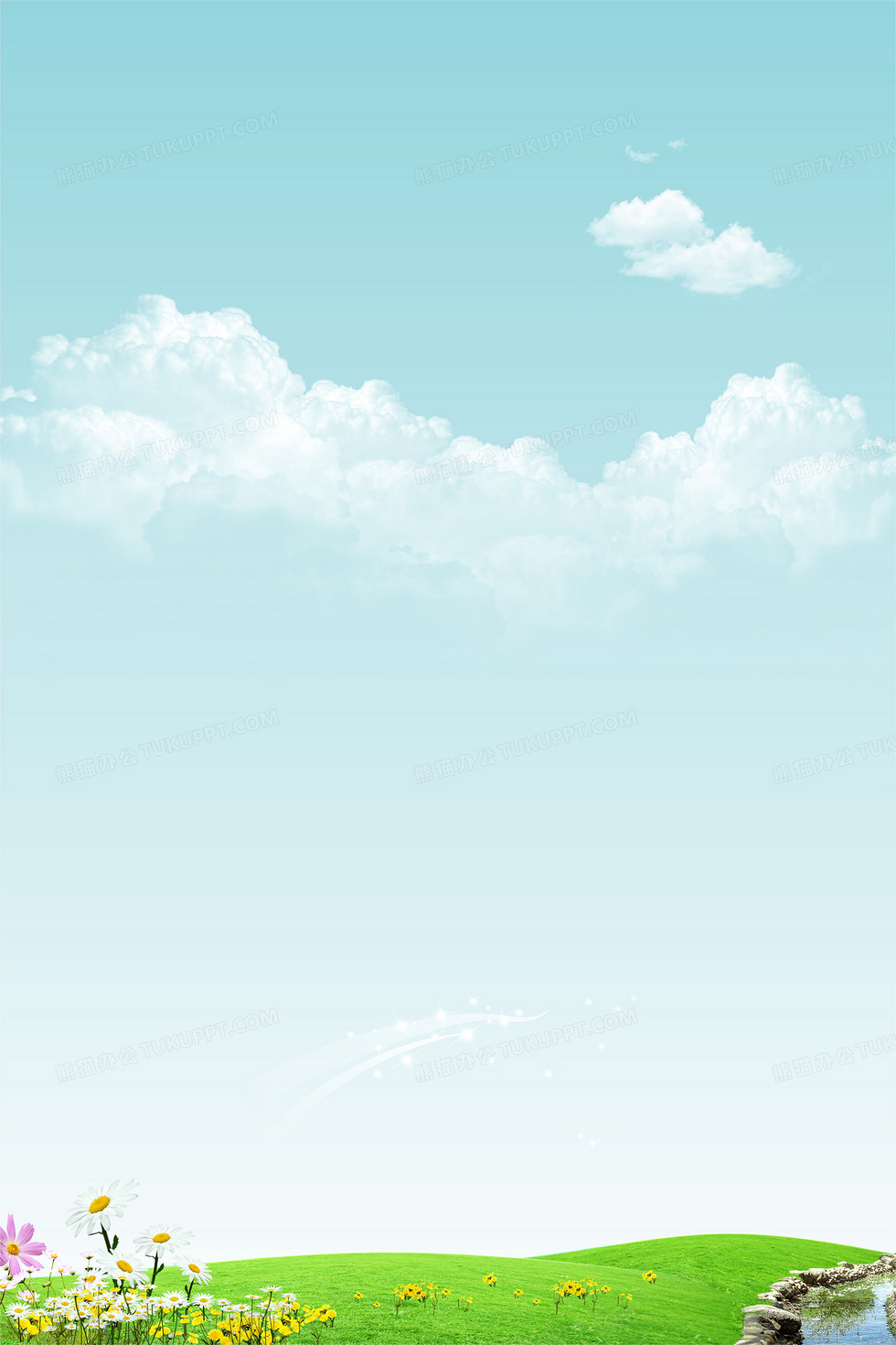 本作品内容为蓝天绿草背景, 格式为 cdr, 图片尺寸为4726 x 7088, 作品中背景图片无需修改, 源文件无水印,可以直接使用, 欢迎使用熊猫办公。 如认为平台内容涉嫌侵权,可通过邮件:tousu@tukuppt.com提出书面通知,我们将及时处理。