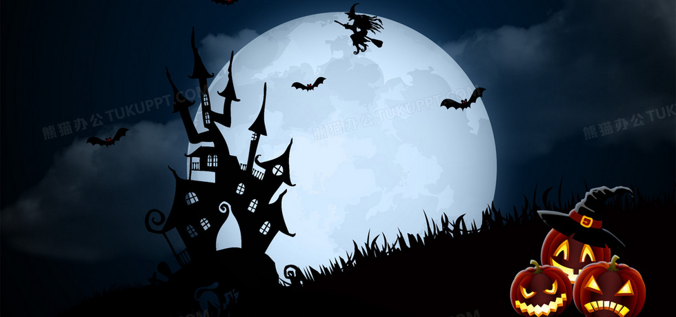 本作品内容为万圣节背景, 格式为 psd, 图片尺寸为1920 x 900, 作品中背景图片无需修改, 源文件无水印,可以直接使用, 欢迎使用熊猫办公。 如认为平台内容涉嫌侵权,可通过邮件:tousu@tukuppt.com提出书面通知,我们将及时处理。