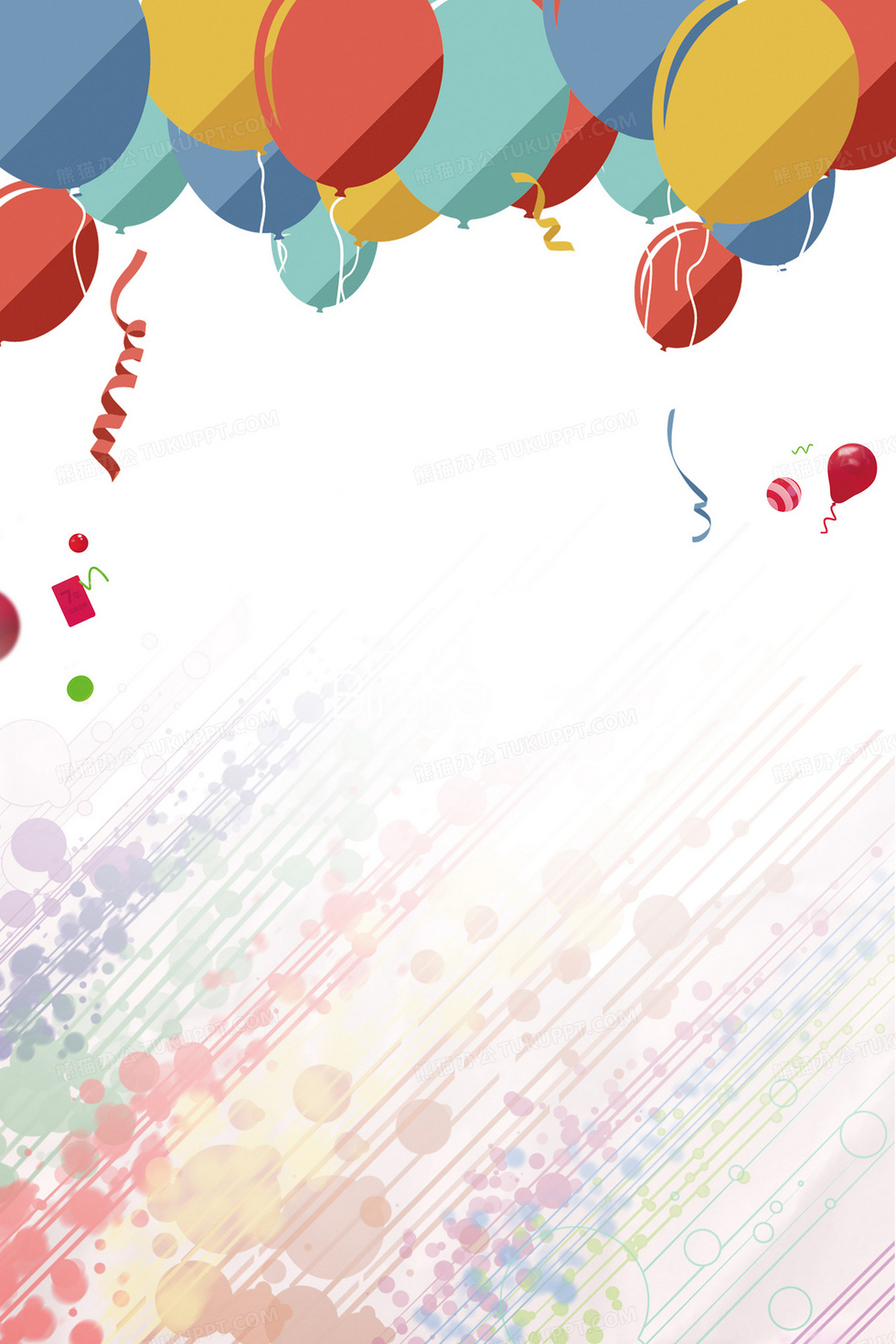本作品内容为卡通彩色气球背景素材, 格式为 psd, 图片尺寸为3543 x 5315, 作品中背景图片无需修改, 源文件无水印,可以直接使用, 欢迎使用熊猫办公。 如认为平台内容涉嫌侵权,可通过邮件:tousu@tukuppt.com提出书面通知,我们将及时处理。