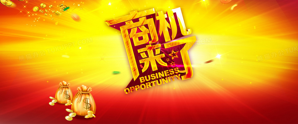 本作品内容为商机来了金融海报图, 格式为 psd, 图片尺寸为1920 x 799, 作品中背景图片无需修改, 源文件无水印,可以直接使用, 欢迎使用熊猫办公。 如认为平台内容涉嫌侵权,可通过邮件:tousu@tukuppt.com提出书面通知,我们将及时处理。