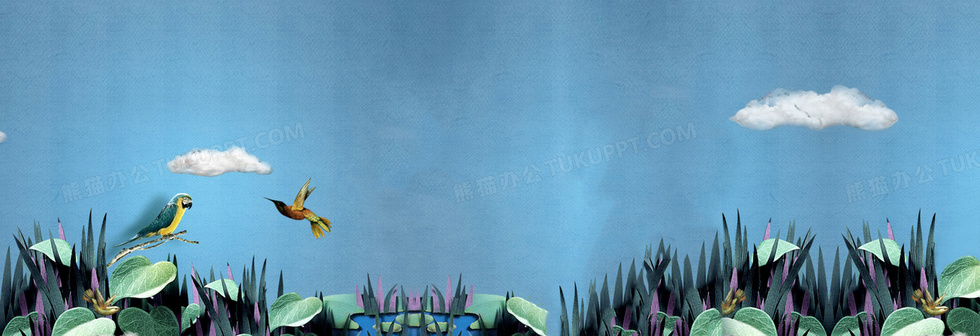 本作品内容为植物 鸟 白云 蓝色背景, 格式为 jpg, 图片尺寸为1920 x 659, 作品中背景图片无需修改, 源文件无水印,可以直接使用, 欢迎使用熊猫办公。 如认为平台内容涉嫌侵权,可通过邮件:tousu@tukuppt.com提出书面通知,我们将及时处理。