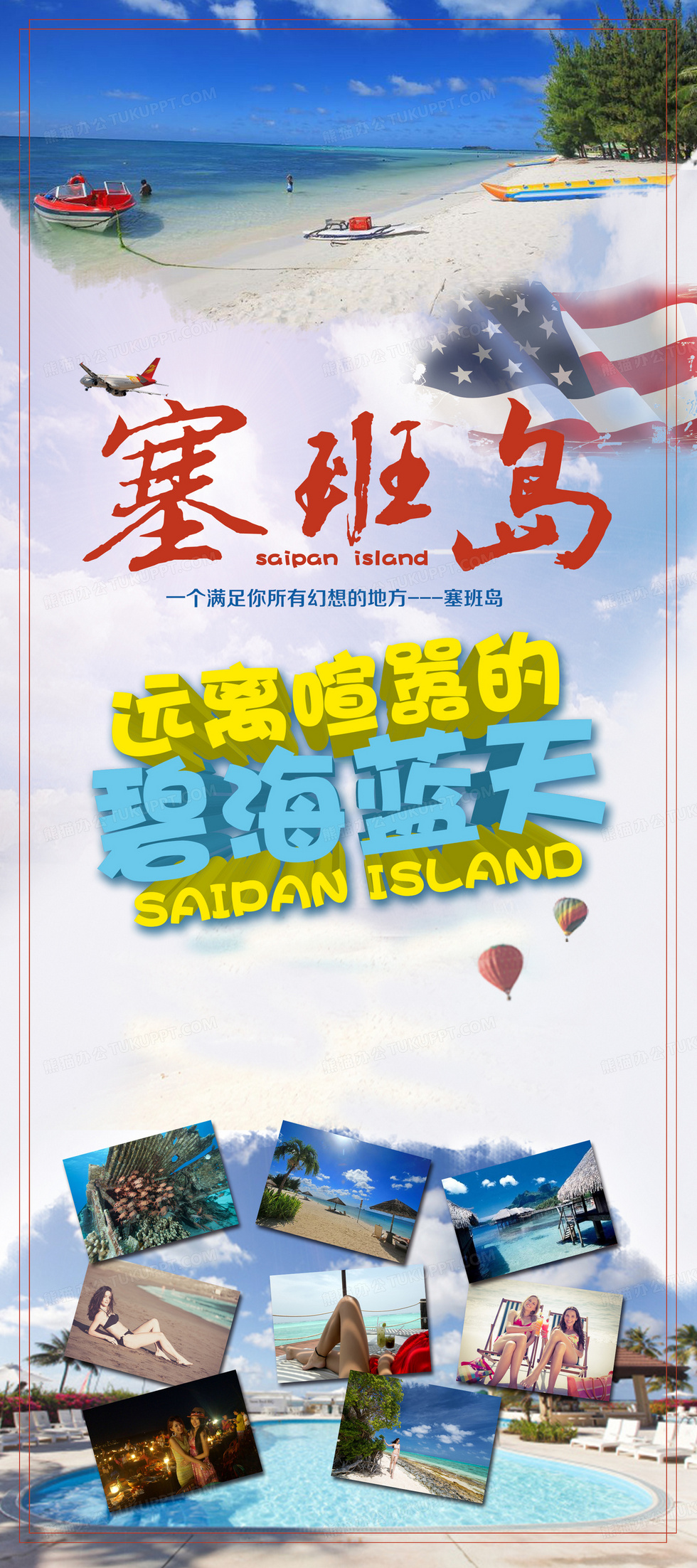 本作品内容为塞班岛旅游海报背景素材, 格式为 psd, 图片尺寸为2000 x 4499, 作品中背景图片无需修改, 源文件无水印,可以直接使用, 欢迎使用熊猫办公。 如认为平台内容涉嫌侵权,可通过邮件:tousu@tukuppt.com提出书面通知,我们将及时处理。