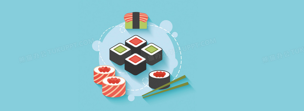 本作品内容为美食寿司扁平几何背景banner, 格式为 psd, 图片尺寸为1920 x 700, 作品中背景图片无需修改, 源文件无水印,可以直接使用, 欢迎使用熊猫办公。 如认为平台内容涉嫌侵权,可通过邮件:tousu@tukuppt.com提出书面通知,我们将及时处理。