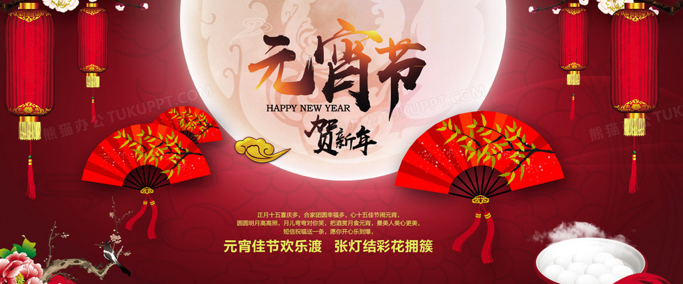 本作品内容为元宵节贺新年喜庆海报背景, 格式为 psd, 图片尺寸为1920 x 800, 作品中背景图片无需修改, 源文件无水印,可以直接使用, 欢迎使用熊猫办公。 如认为平台内容涉嫌侵权,可通过邮件:tousu@tukuppt.com提出书面通知,我们将及时处理。