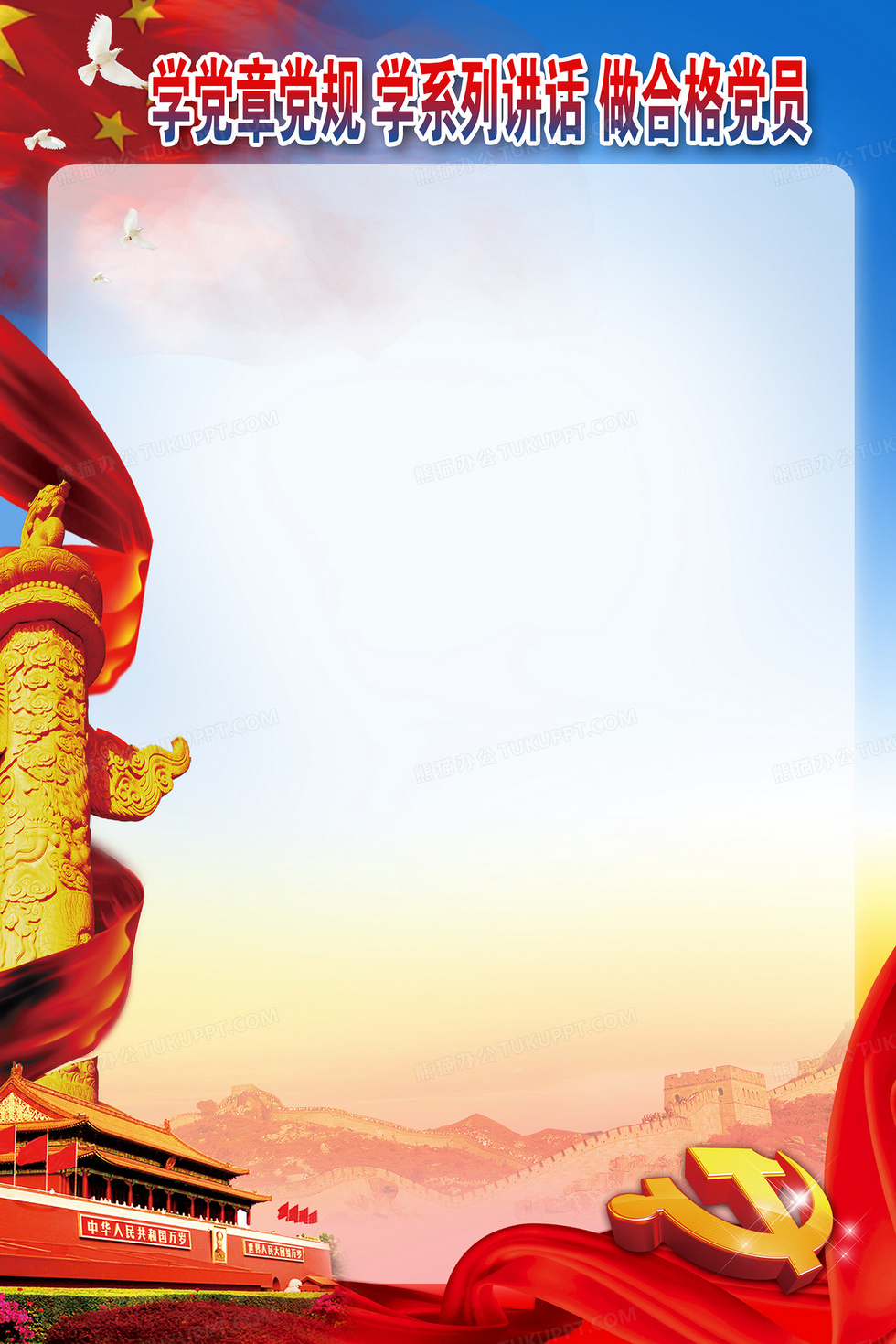 本作品内容为两学一做 党建展板背景素材, 格式为 psd, 图片尺寸为3543 x 5315, 作品中背景图片无需修改, 源文件无水印,可以直接使用, 欢迎使用熊猫办公。 如认为平台内容涉嫌侵权,可通过邮件:tousu@tukuppt.com提出书面通知,我们将及时处理。