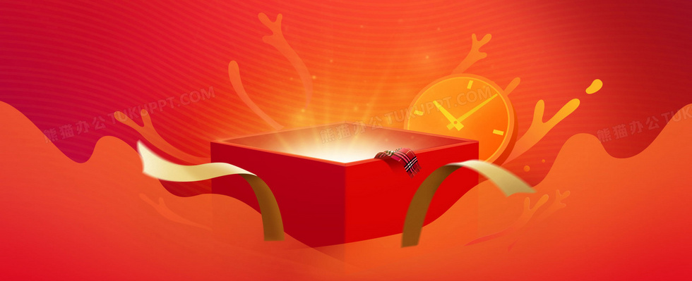 本作品内容为新年红色渐变礼盒背景, 格式为 jpg, 图片尺寸为1920 x 781, 作品中背景图片无需修改, 源文件无水印,可以直接使用, 欢迎使用熊猫办公。 如认为平台内容涉嫌侵权,可通过邮件:tousu@tukuppt.com提出书面通知,我们将及时处理。