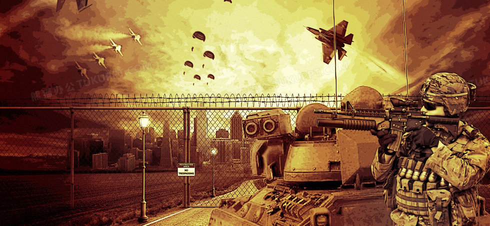 本作品内容为现代战争背景图, 格式为 jpg, 图片尺寸为1920 x 887, 作品中背景图片无需修改, 源文件无水印,可以直接使用, 欢迎使用熊猫办公。 如认为平台内容涉嫌侵权,可通过邮件:tousu@tukuppt.com提出书面通知,我们将及时处理。