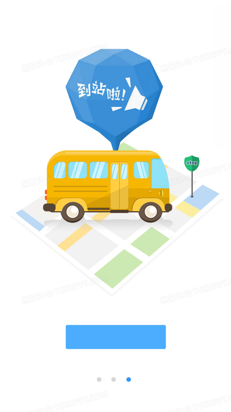 本作品内容为地图定位巴士公交车到站啦扁平化手机引导页, 格式为 psd, 图片尺寸为1080 x 1920, 作品中背景图片无需修改, 源文件无水印,可以直接使用, 欢迎使用熊猫办公。 如认为平台内容涉嫌侵权,可通过邮件:tousu@tukuppt.com提出书面通知,我们将及时处理。