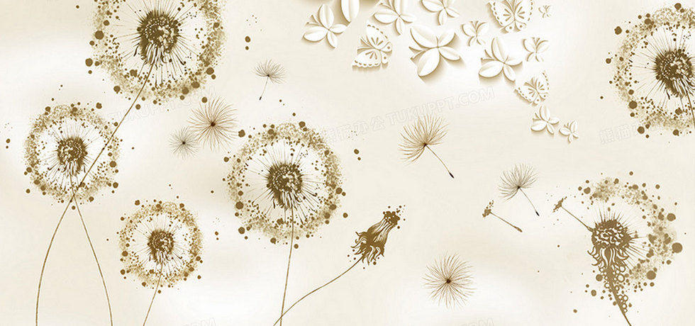 本作品内容为蒲公英3D立体蝴蝶简约家居背景, 格式为 jpg, 图片尺寸为1920 x 900, 作品中背景图片无需修改, 源文件无水印,可以直接使用, 欢迎使用熊猫办公。 如认为平台内容涉嫌侵权,可通过邮件:tousu@tukuppt.com提出书面通知,我们将及时处理。