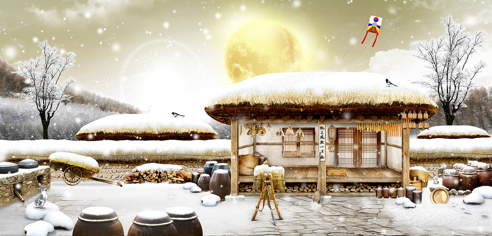 本作品内容为韩国冬天茅草屋小院印刷背景, 格式为 psd, 图片尺寸为5000 x 2400, 作品中背景图片无需修改, 源文件无水印,可以直接使用, 欢迎使用熊猫办公。 如认为平台内容涉嫌侵权,可通过邮件:tousu@tukuppt.com提出书面通知,我们将及时处理。
