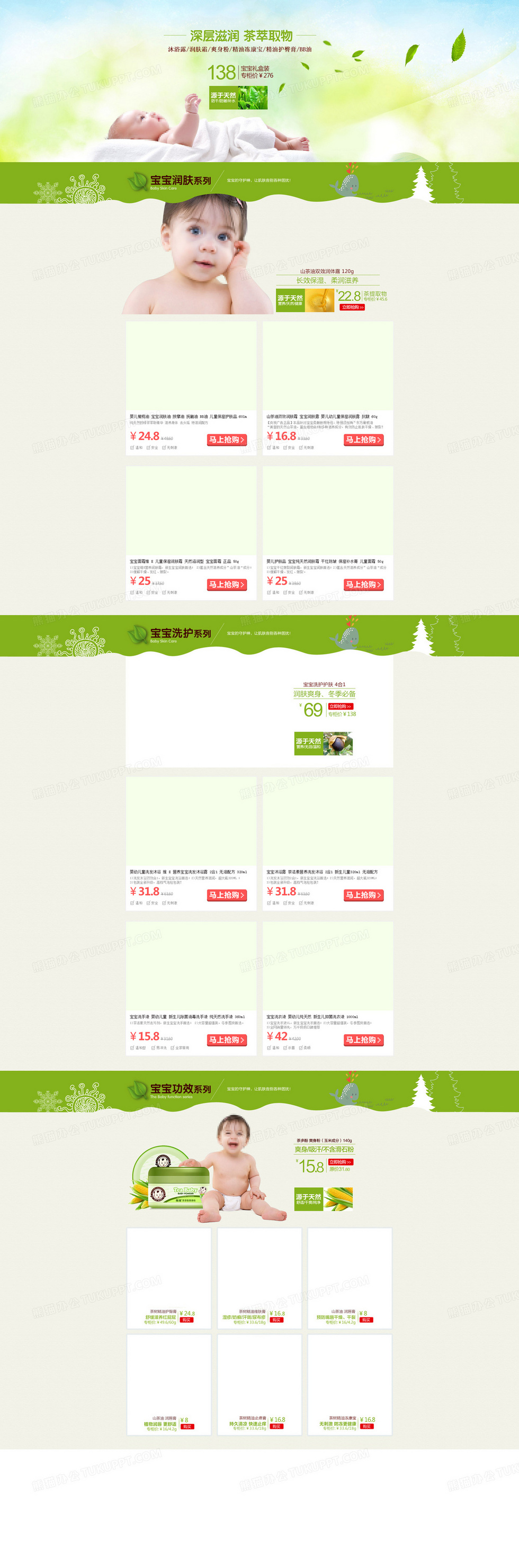 本作品内容为绿色天然母婴用品店铺首页背景, 格式为 psd, 图片尺寸为1920 x 5802, 作品中背景图片无需修改, 源文件无水印,可以直接使用, 欢迎使用熊猫办公。 如认为平台内容涉嫌侵权,可通过邮件:tousu@tukuppt.com提出书面通知,我们将及时处理。