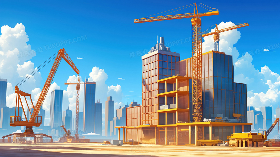 本作品内容为蓝天白云高楼大厦建筑工地施工场景插画, 格式为 jpg, 大小3 MB, 图片尺寸为2912 x 1632, 源文件无水印, 欢迎使用熊猫办公。 如认为平台内容涉嫌侵权,可通过邮件:tousu@tukuppt.com提出书面通知,我们将及时处理。