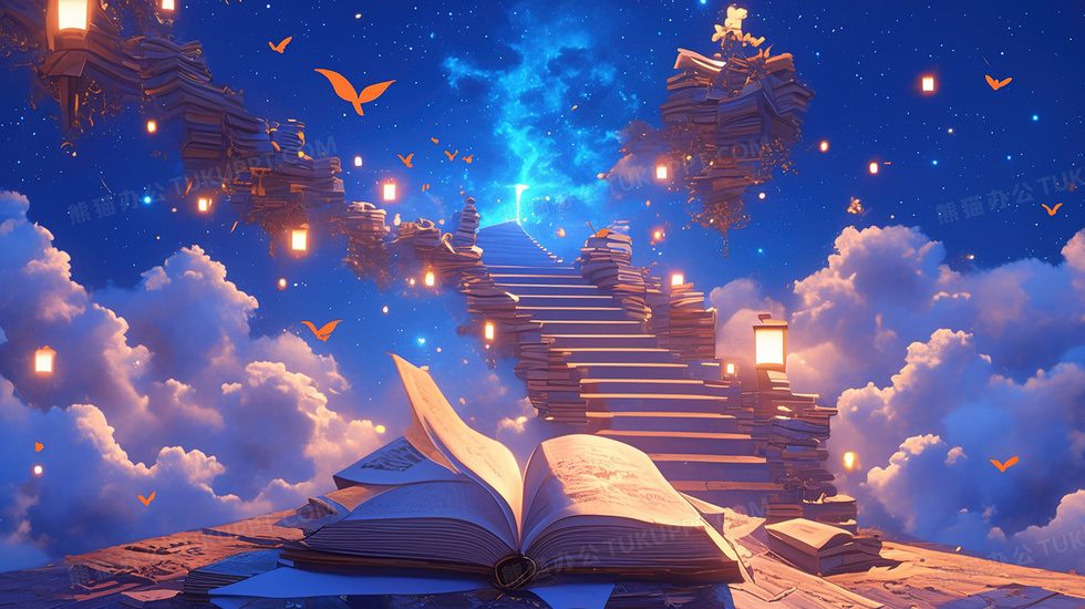 本作品内容为云层里的梦幻书籍进步阶梯漂浮孔明灯插画, 格式为 jpg, 大小3 MB, 图片尺寸为2912 x 1632, 源文件无水印, 欢迎使用熊猫办公。 如认为平台内容涉嫌侵权,可通过邮件:tousu@tukuppt.com提出书面通知,我们将及时处理。