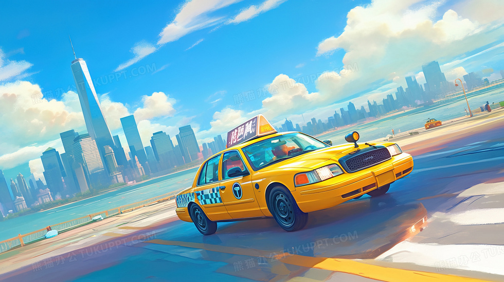 本作品内容为马路上行驶的出租车插画, 格式为 jpg, 大小3 MB, 图片尺寸为2912 x 1632, 源文件无水印, 欢迎使用熊猫办公。 如认为平台内容涉嫌侵权,可通过邮件:tousu@tukuppt.com提出书面通知,我们将及时处理。