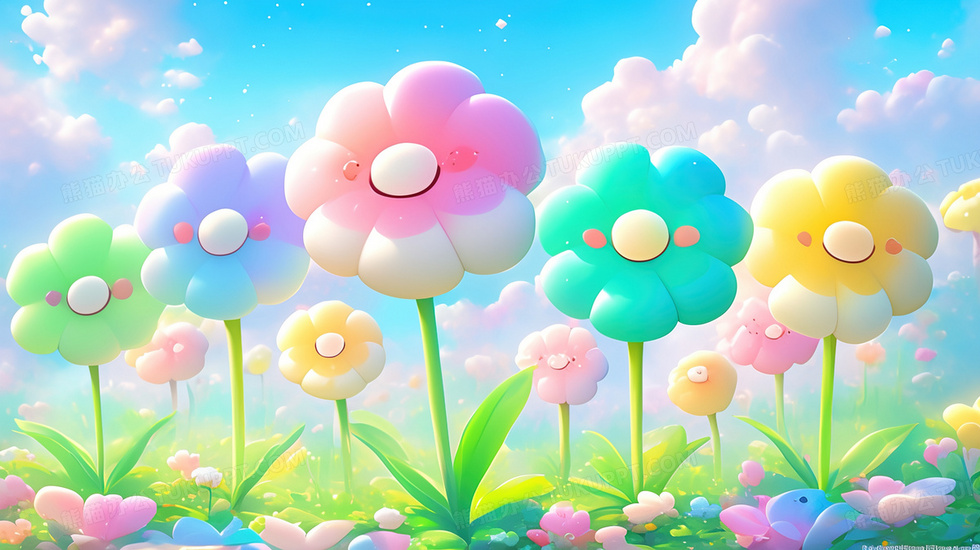 本作品内容为3D草地上微笑毛毡花朵天空云层插画, 格式为 jpg, 大小2 MB, 图片尺寸为2912 x 1632, 源文件无水印, 欢迎使用熊猫办公。 如认为平台内容涉嫌侵权,可通过邮件:tousu@tukuppt.com提出书面通知,我们将及时处理。