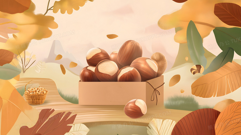本作品内容为卡通风格农业农产品板栗栗子插画, 格式为 jpg, 大小3 MB, 图片尺寸为2912 x 1632, 源文件无水印, 欢迎使用熊猫办公。 如认为平台内容涉嫌侵权,可通过邮件:tousu@tukuppt.com提出书面通知,我们将及时处理。